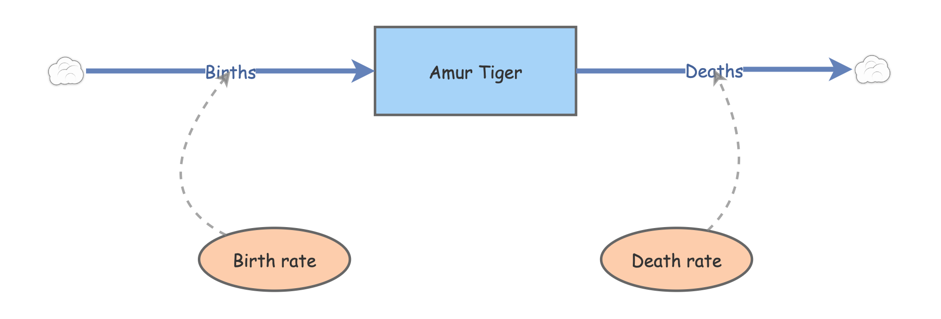 Amur Tiger Births would then be the input [Flow] to the population of Amur Tiger over time.