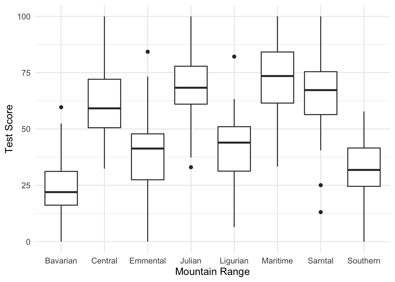 ggplot(aes(x = mountainRange, y = testScore)) +