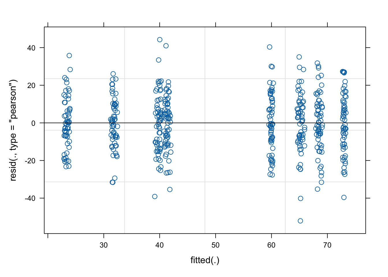 plot(mixed.lmer)[1] # looks alright, no paterns evident