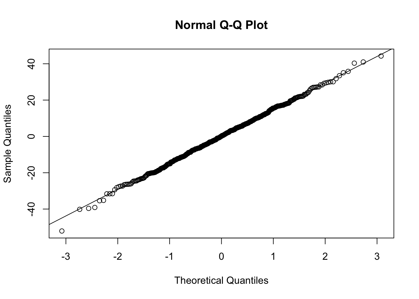 qqline(resid(mixed.lmer)) # points fall nicely onto the line - good!